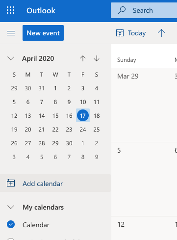 Open Outlook Calendar (the small calendar icon in the bottom left) and select + Add calendar
