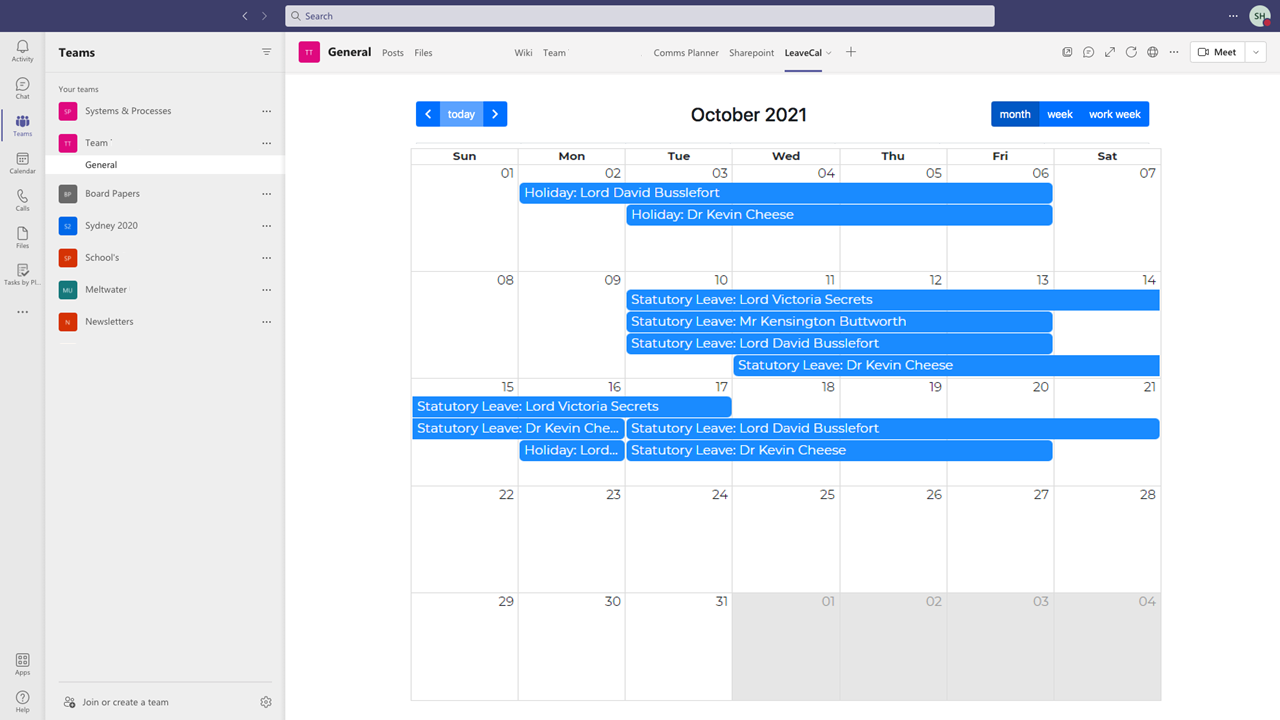 Viewing LeaveCal with Microsoft Teams or your Intranet