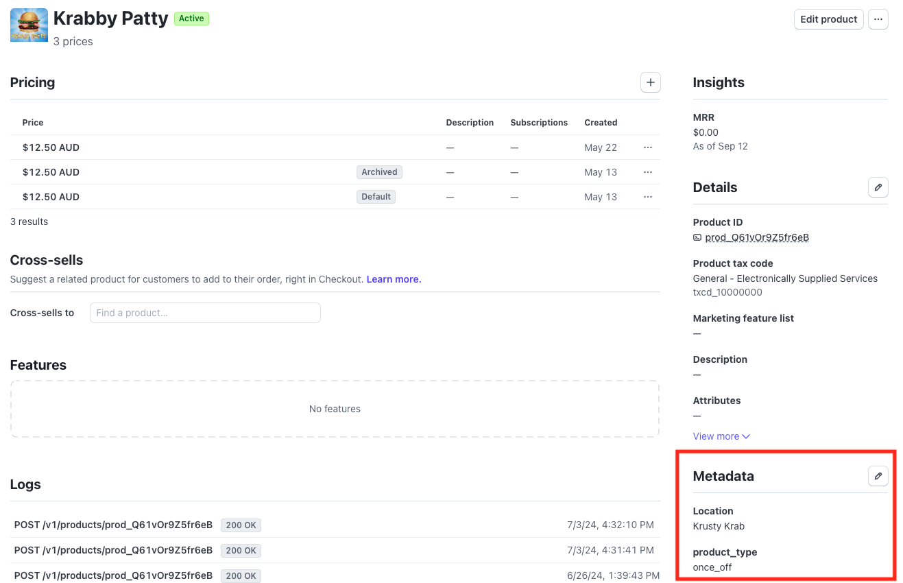 Store additional attributes - while Stripe has a range of fields against each object in the system, you may find that you need extra data (e.g. the type of a product, the location of a service, etc). While other systems offer custom fields, Stripe provides the ultimate flexibility, allowing you to drop that extra data into the metadata section of each object.